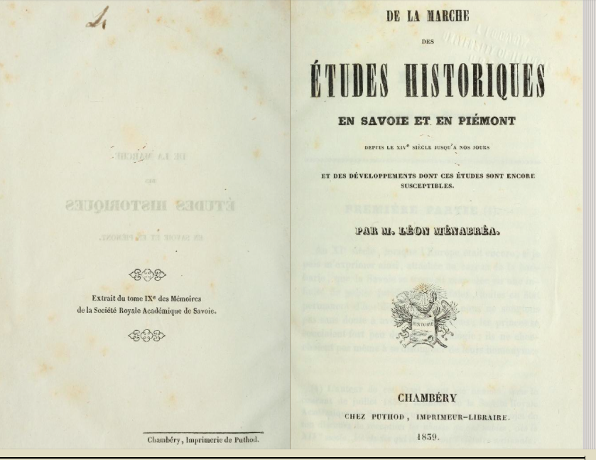 de la marche et des études historiques en Savoie et Piémont-1839, par Léon Ménabréa - citation d'Évian Epaone de-la-marche-des-Etudes-historiques-en-savoie-et-en-piémont-1839-par-Léon-Ménabréa-page-de-garde 0 par Rédaction de Cité d'Evian le 1 août 2014