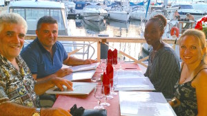 Nous revenons sur nos pas et c’est Franck qui nous reçoit au Cabestan. Il fait chaud, le service est en alerte. Un lieu à recommander, et Franck partout, toujours. Il nous trouve une place à une jolie table qui va nous permettre de voir le feu d’artifice.
